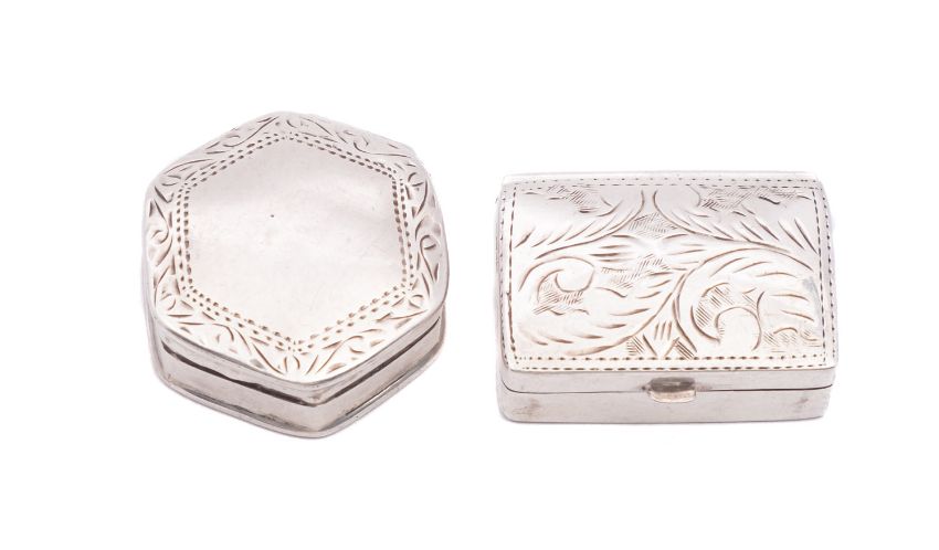 Two modern silver pill cases both marked .925, 17.5gms, (0.5ozs.)