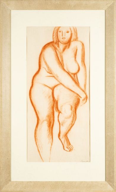 Bernard Meninsky (British, 1891-1950) -Study of a seated female nude -Red chalk on paper -59 x 28cm -Signed lower right -Provenance: By descent from James (Jim) O'Connor, Edward Wolfe's partner
