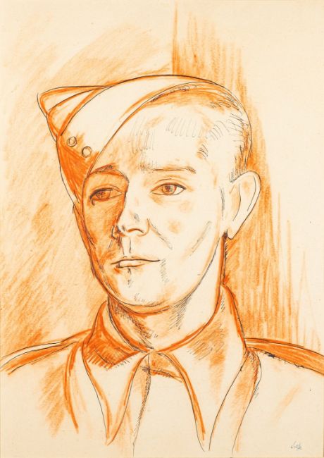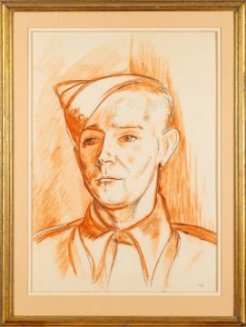 *Edward Wolfe RA (South African/ British, 1897-1982) -Jim Hamilton (Private Jim) -Red crayon and ink on paper -34 x 48cm -Signed lower right -Provenance: By descent from James (Jim) O'Connor, Edward Wolfe's partner