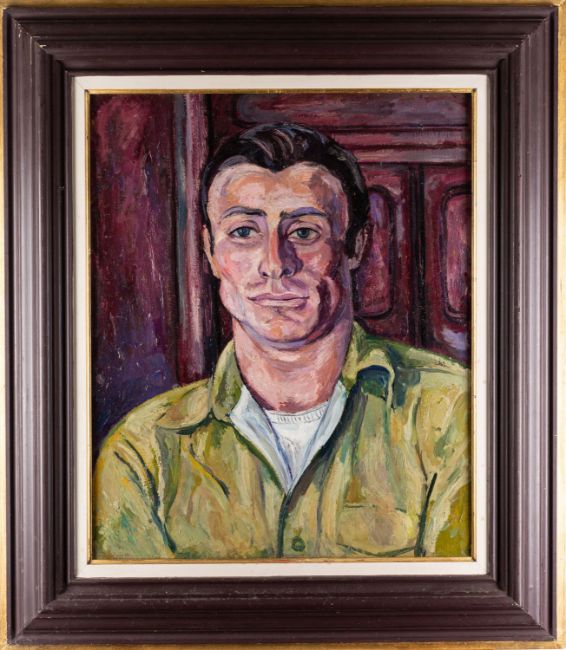 *Edward Wolfe RA (South African/ British, 1897-1982) -Portrait of a man in a green shirt -Oil on board -54 x 44cm - 77 x 66cm framed -Provenance: By descent from James (Jim) O'Connor, Edward Wolfe's partner