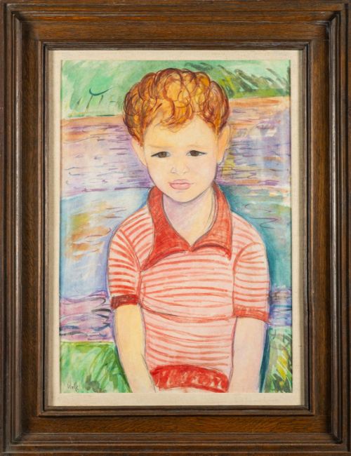 *Edward Wolfe (South African/ British, 1897-1982) -Portrait of a Young Boy in Striped Red Top -Watercolour and pencil -49.5 x 34.5cm -Signed lower left -Provenance: By descent from James (Jim) O'Connor, Edward Wolfe's partner