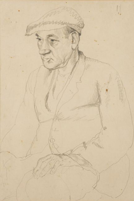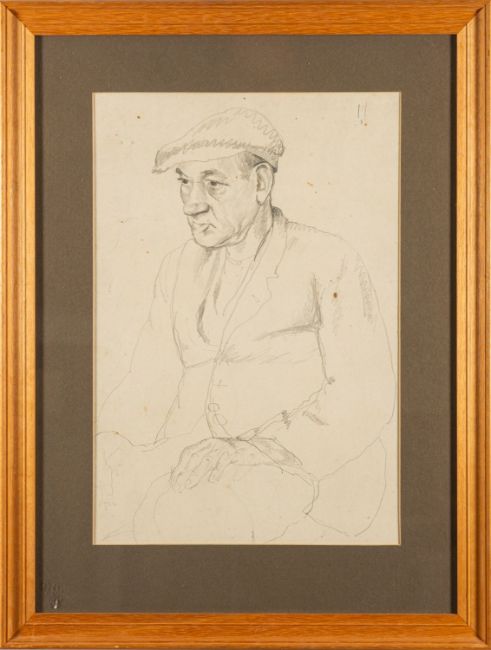 Attributed to Harold C. Harvey (British, 1874-1941) -Portrait of a seated man in a flat cap smoking a cigarette -Pencil on paper -46 x 31cm -Provenance: By descent from James (Jim) O'Connor, Edward Wolfe's partner