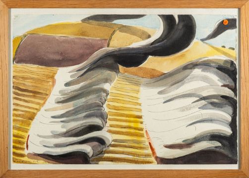*Michael Cullimore (British, 1936-2021) -Burning Stubble -Ink and watercolour -38 x 57cm -Signed and dated 1984 lower left -Provenance: The Millinery Works; By descent from James (Jim) O'Connor, Edward Wolfe's partner