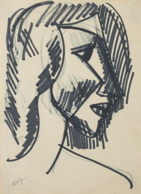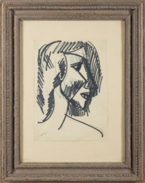 *Edward Wolfe RA (South African/ British, 1897-1982) -Study of a head in profile -Ink on paper -28 x 20cm - 51 x 40cm framed -Signed lower left -Provenance: By descent from James (Jim) O'Connor, Edward Wolfe's partner