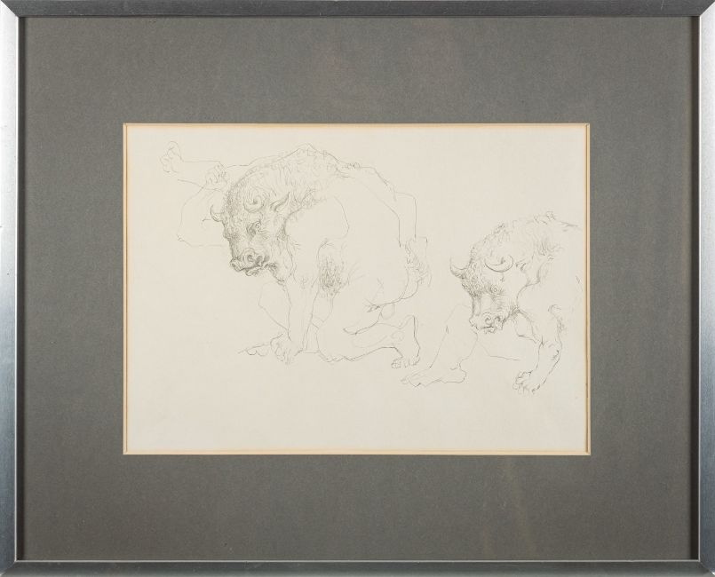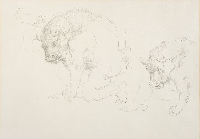 *Michael Ayrton (British, 1921-1975) - Minotaur Studies: preparatory sketch for the Minotaur set of ten etchings - 1965 - Pencil on paper - 24 x 34cm - 43 x 53cm framed - Provenance: Collection of Philip Ward-Green Esq. (1984); Christopher Hull Gallery, London