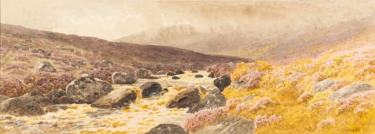 William Snell Morrish (British, 1844-1917) - 'On the South Teign Above Fernworthy' and 'On the North Teign, Dartmoor, After Rain' - Pair of watercolours - Each 28 x 77cm - 49 x 97cm framed - Each signed lower right (2)