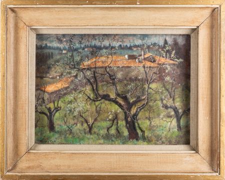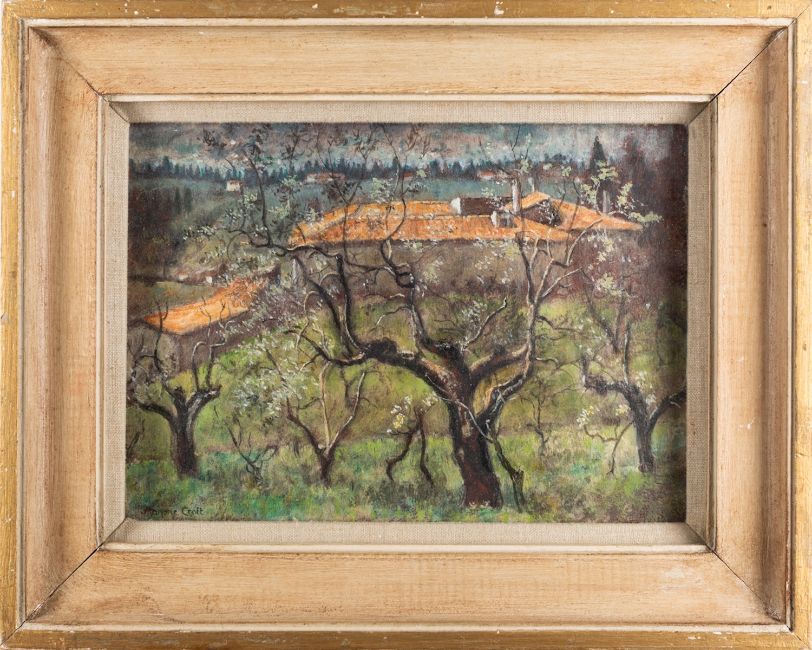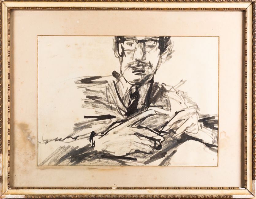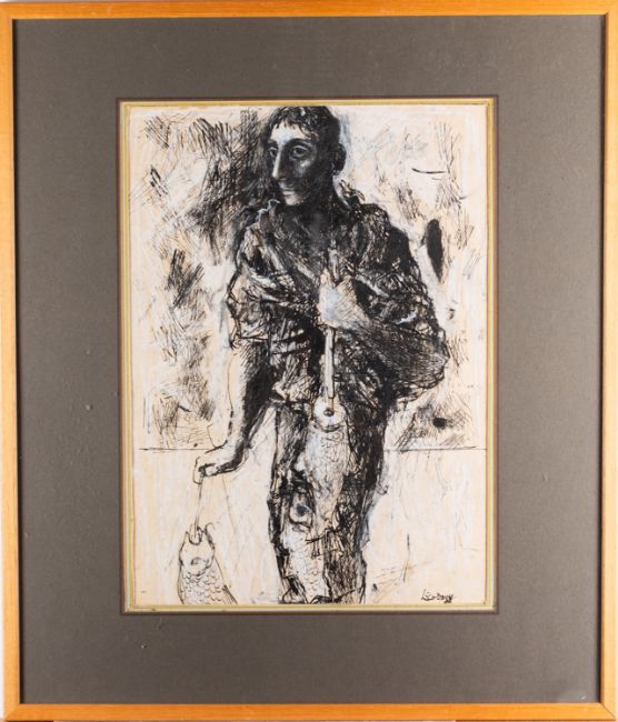 A group of six modern pictures comprising - *Leo Davey (1924-1987), Fisherman's catch, pen and ink drawing heightened with white, 36 x 26cm, signed bottom right - *Leo Davey (1924-1987), Half-length figure study, oil and wash on paper heightened with white, 24 x 17.5cm, signed and dated '59 bottom right - Marjorie Croft (19/ 20th Century), Olive Trees near Florence, 18 x 25cm, pastel, signed bottom left - Together with two modern ink wash portraits and a print (6)