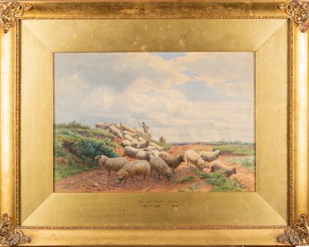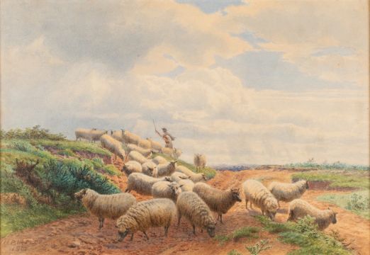 Henry Birtles (British, 1838-1907) - On the South Downs - Watercolour - 24 x 34.5cm - 42 x 53cm framed - Signed and dated 1866 lower left
