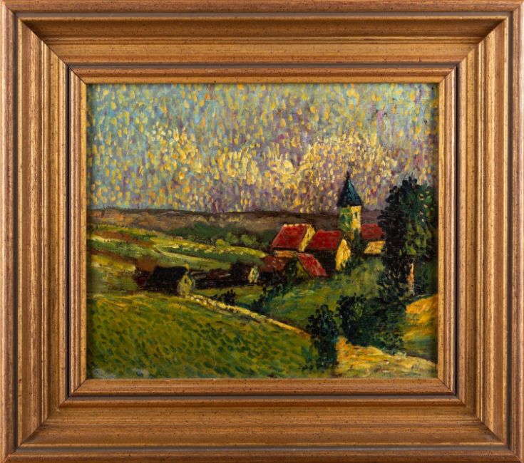 After Léo Gausson (French, 1860-1944) - Triel-sur-Seine - Oil on panel - 16.5 x 20cm - 25.5 x 28.5cm framed - This painting is a copy after a work by Gausson most recently sold as lot 701 from the Cox Collection Auction, Christie's 13 November 2021