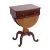 A Regency mahogany and inlaid rectangular work table, bordered with ebony lines, the top with rounded corners and a reeded edge, fitted with a drawer in the kingwood crossbanded frieze and with upholstered U-shaped well below, on rectangular stem and quadruped splayed scroll supports, with rosette ornament, 50cm width, 72cm height, 39cm depth.