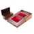 A Victorian walnut and parquetry writing slope, second half 19th century; the exterior with twin bands of Tunbridgeware style decoration, the fitted interior with red velvet and gilt tooled leather bordered skiver, 14.5cm high, 30cm wide; and a Regency rosewood tea caddy, circa 1815; of sarcophagus form, 12cm high, 22cm wide
