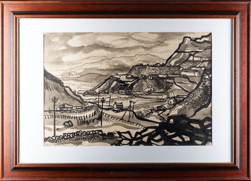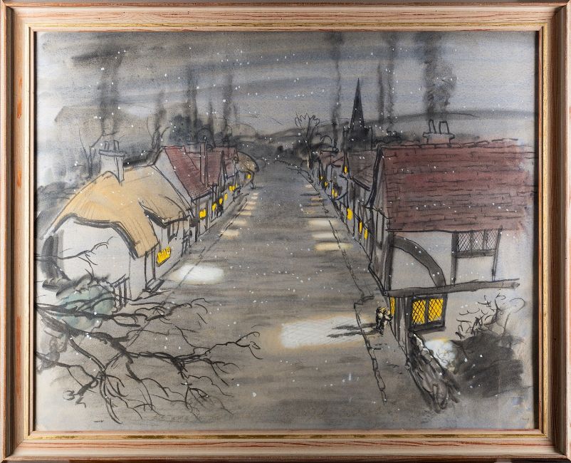*John Worsley (British, 1919-2000) - Storyboard for 'The Wind in the Willows': Street scene with Mole and Ratty - Mixed media on paper - 47 x 60cm - 55 x 68cm framed