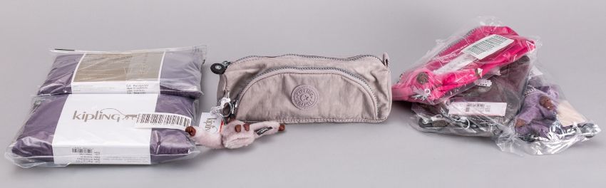 Kipling. A group of three 'Cute (3)' purses in the colours 'Deep Lilac', 'Lavender Grey' and 'Ash grey', together with two 'Fold Sh Xl' both in 'Deep Lilac', and a 'Freedom (3)' in the colour 'Antique Fushia'. All items within original packaging with tags and unused. (6)