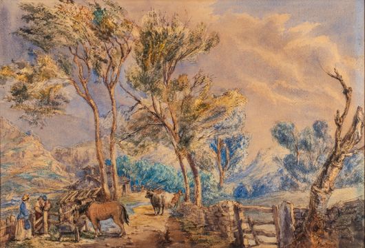 Attributed to David Cox (British, 1783-1859) - Beddgelert, North Wales - Watercolour - 37.5 x 55cm.