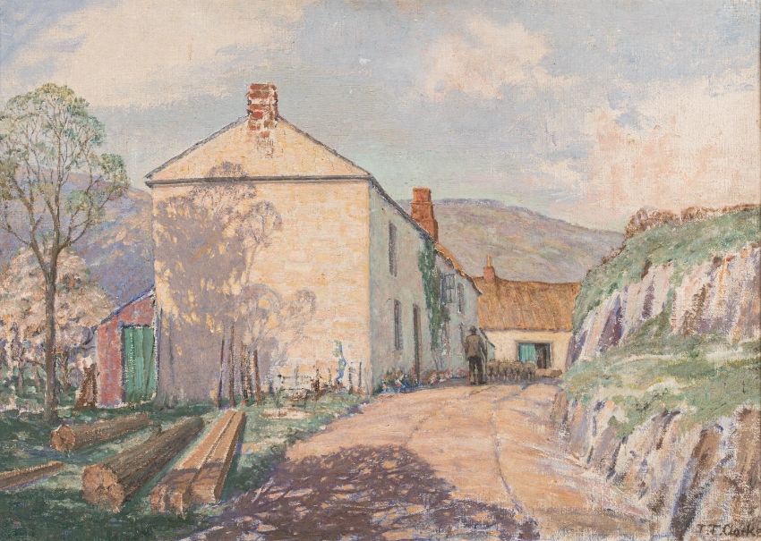 Thomas Flowerday-Clarke (British, 1877-1953) - An Early Morning in Spring, Coombe - Oil on board - 49 x 69cm - Signed lower right - Exhibited: Royal Academy, London (1933)