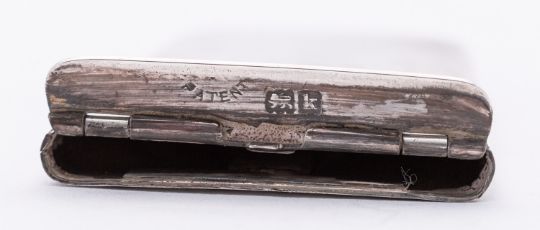 An Edward VII silver 'Needham's paten Repeating Card Case' by Sampson Mordan & Co, London 1905, of rounded rectangular form, sprung hinge lid, stamped patent, 8.5cms. (3.3ins.)