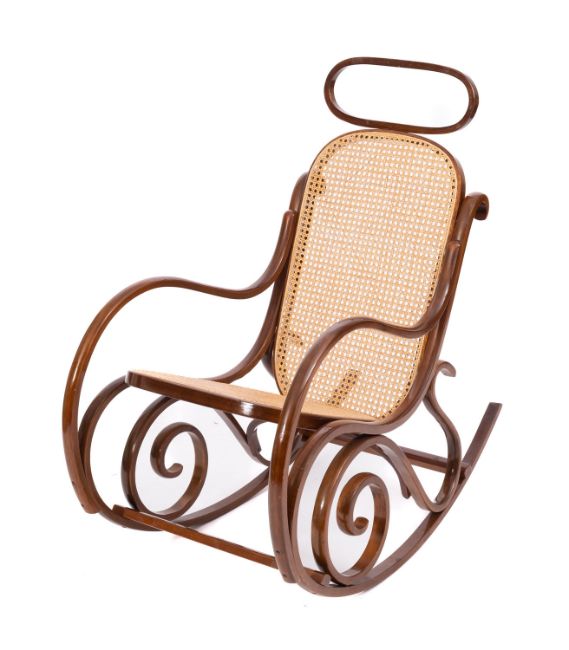 A Continental bentwood and canework rocking chair, in the manner of Thonet, 20th Century; with openwork scrolling sides; 97cm high, 52cm wide.