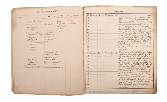 A 19th century log book for the Honorable Company Ship 'Alfred' , kept by Thomas Dickson,, 3 September 1858-15 June 1859, original cloth, backed boards, printed for Charles Wilson*Notes- A logbook describing a voyage from Gravesend to Calcutta (early January 1859) with two leaves listing the passengers and crew. The voyage out contained 450 troops from various regiments and, on 1st March 1859, brought back an unspecified number of troops, returning to England via St Helena and the Azores. The log, which is overwhelmingly concerned with the weather, also mentions various ships which passed including the 'Gloriana', 'Trafalgar' and a Dutch ship sailing from Batavia to Sydney