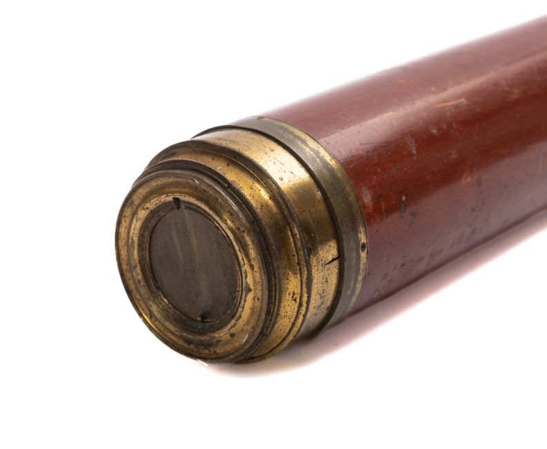 A 19th century mahogany and brass singe draw 'Day or Night' telescope, maker Isaac Aaron's & Son, London, with sliding lens covers to either end, 91cm extended (thread to main tube worn)