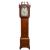 A 19th century oak and mahogany strung Tidal longcase clock, unsigned, the painted arched moon phase dial with Roman numerals, twenty -four hour chapter ring, subsidiary seconds and day dials, hand painted floral spandrels, under a glazed door hood with swan neck pediment , brass finals and reeded columns, over trunk with shaped single door inlaid with sycamore shell decoration , on a plinth base decorated en suite, 214cm high