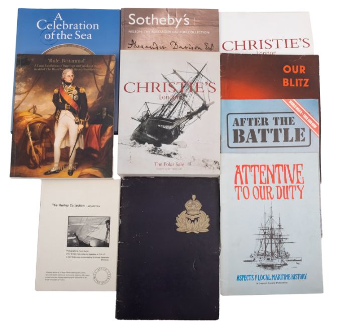 Prentice, R. 'A Celebration of The Sea', 1994, HMSO, together with two Christies 'The Polar Sale' catalogues 2001 & 2002 , a Sotheby's 'Nelson: The Alexander Davison Collection' catalogue 2002 and a group of maritime related periodicals.