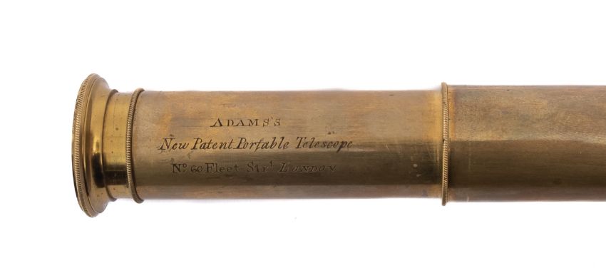 Adams of London - An eight draw brass and fish skin mounted 'Adams New Patent Portable Telescope', signed as per title with Fleet Street address, with brass end cap in a red Moroccan leather case. 70cm extended