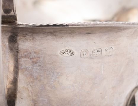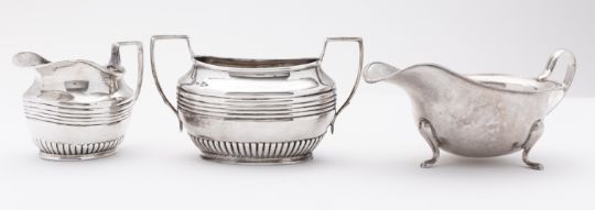 A mixed group of silver including; a Birmingham silver sauce boat by Adie Bros, Birmingham, and a part reeded sugar bowl and cream jug, 293gms., (9.4ozs.)
