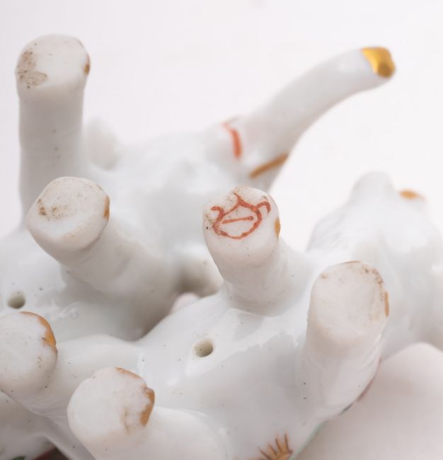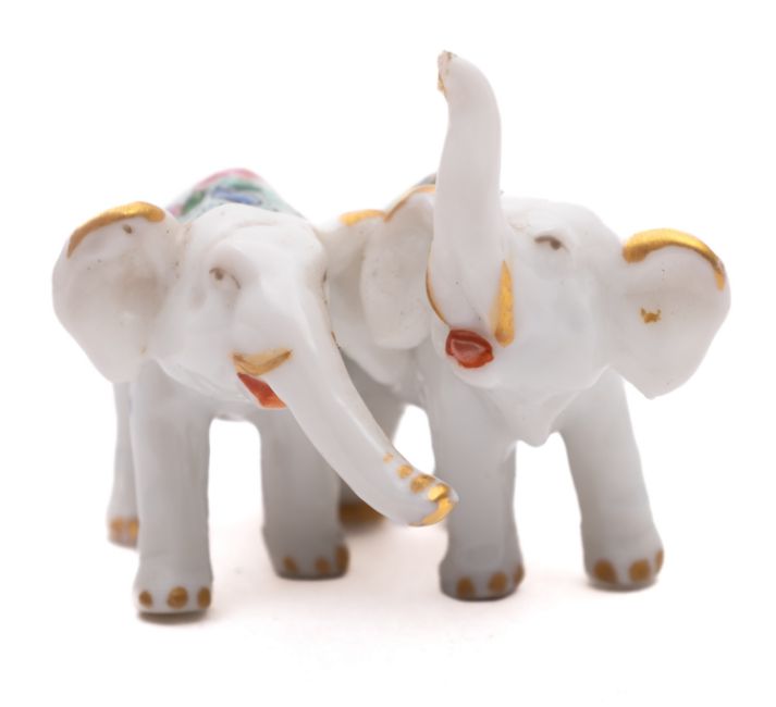 An Asian miniature porcelain double elephant group decorated in famille rose enamels, iron-red mark, 4cm.