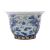 A Chinese blue and white plant pot and stand enamelled in blue with dragons pursuing sacred pearls amongst flame and cloud scrolls, the stand with bats amongst cloud scrolls, 24cm diameter [minor rim chips].