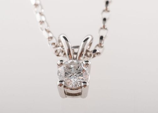 A diamond pendant and chain, the pendant, claw set with a brilliant-cut diamond, diamond approx. 0.30 carat, 'V' split bale, unmarked white metal, length approx. 0.8cm, on a flat edged belcher link chain, UK import mark 375 to jump ring, length approx. 48.0cm, total gross weight 2.8grams.