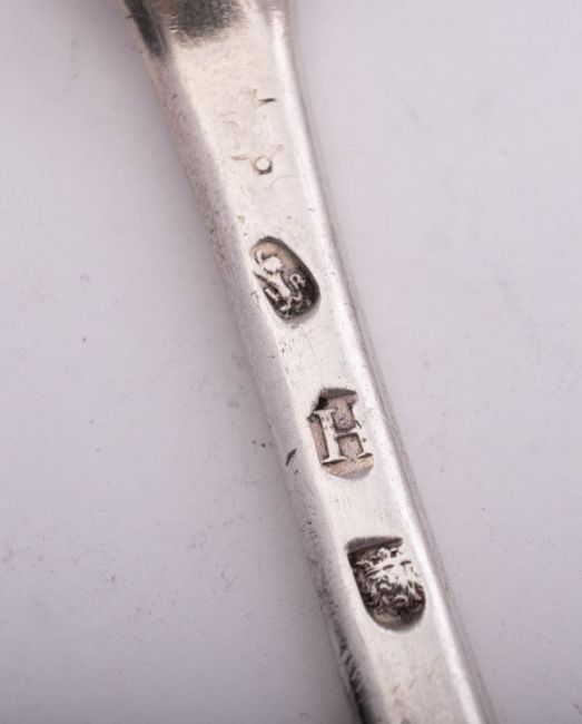 Mixed silver flatware, comprising of a soup ladle, a marrow scoop, 5 tablespoons, a Dutch serving slice, a continental coffee spoon, a child's pusher and 4 teaspoons, some of the above initialled, mixed makers & dates, mostly George III; the ladle 12.5" (31.7cm) long; 20.25ozt (14)