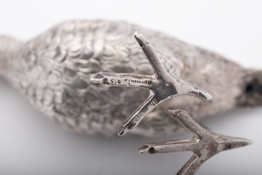 A 20th century continental silver figure of a bird, realistically modelled as a woodcock or snipe, import marks for Israel Freeman & Son Ltd, London 1965; 4.25" (11cm) long; 3.4ozt