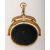 An antique carnelian and bloodstone swivel fob, the plain mounted swivel fob is set with an oval carnelian plaque to one side and an oval bloodstone plaque to the other, with an ornately carved mount, indistinct mark to plain mount on swivel fob, the swivel fob measures approx. 2.3cm x 1.9cm, length of fob overall approx. 4.0cm, 10.06grams.(Note: the metal has thinned and split in places).