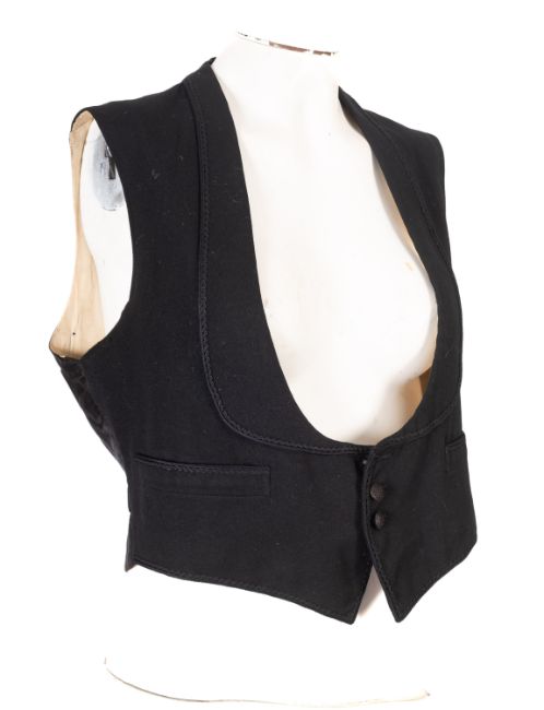 A group of men's waist five coats, including a burgundy 'G.A.Dunn and Co Ltd', together with three black waist coats and a navy pinstripe waistcoat, and a black and yellow tie. (6)