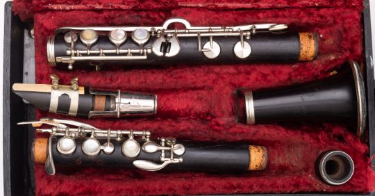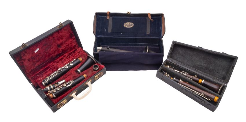 A 20th Century C Howarth of London simple system clarinet. Together with two incomplete clarinets in cases.