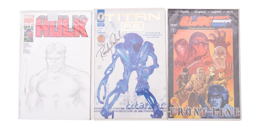 Three limited edition signed comic artworks. Comprising Titan A.E no. 1 signed by Randy Emberlin, certificate number 69, G.I Joe Frontline no. 1 signed by Dan Jurgens, certificate number 513 and a variant edition of Hulk no. 50 with signature to the cover.