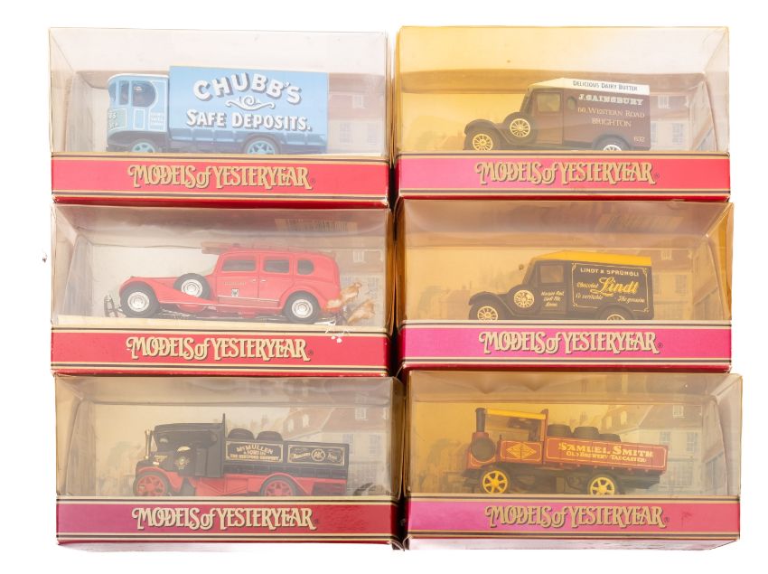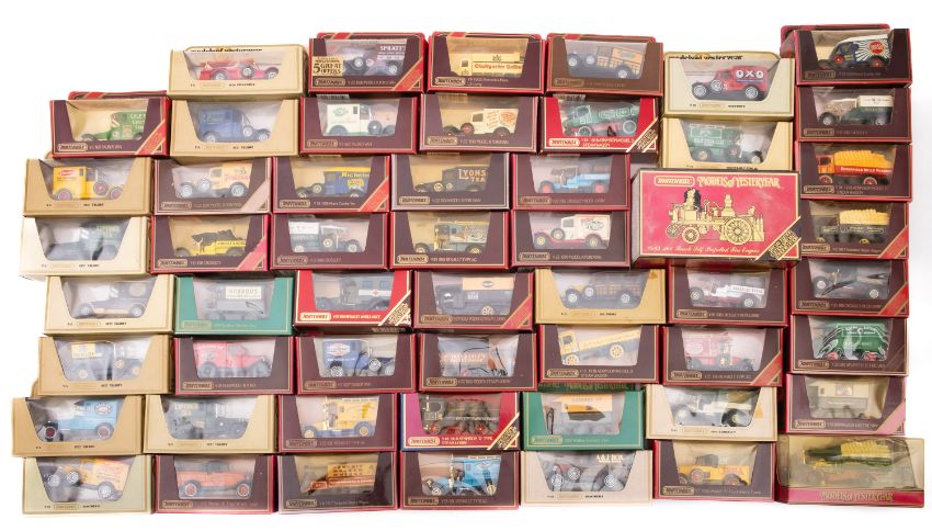 A collection of Matchbox Models of Yesteryear diecast vehicles. Mainly trucks and lorries including Chubbsa Safe Deposits, Joseph Rank Flower Mills and a 1933 Cadillac fire engine etc, all boxed.