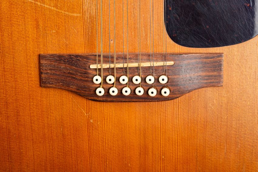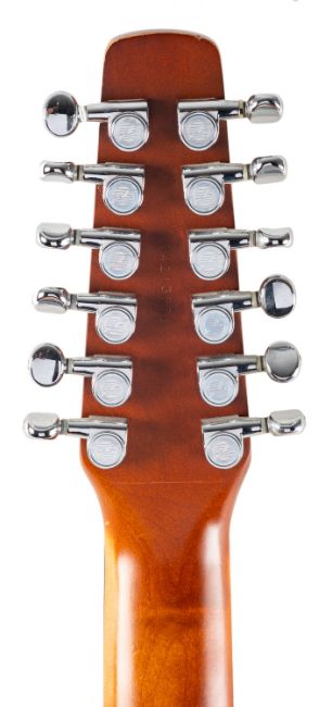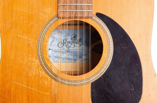 A Godin 'Seagull S12+' twelve string acoustic guitar, with dot inlaid fret markers and herring bone inlay to sound hole, in a soft shell case.
