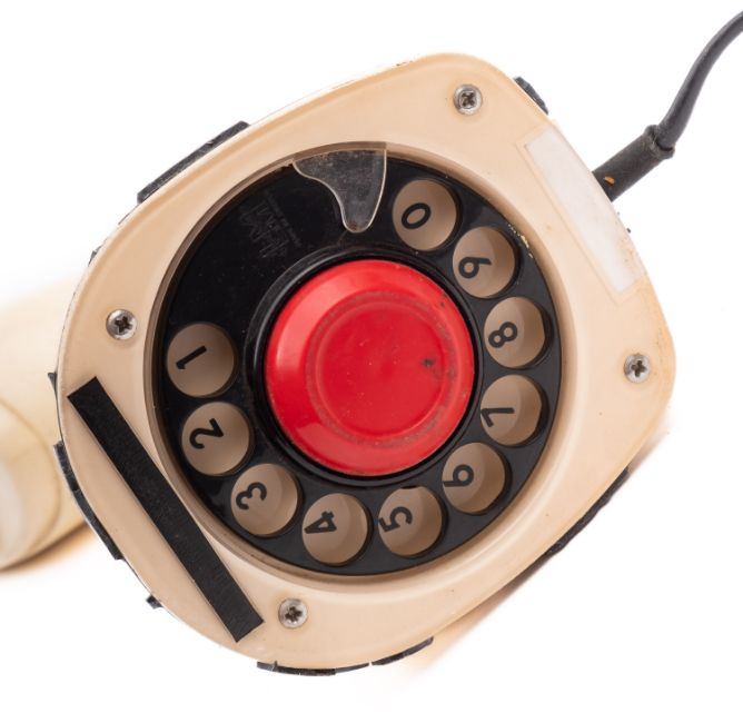 A late 20th century Swedish Ericofon 'Cobra phone' rotary dial telephone, designed for Ericsson by Ralph Lysel.