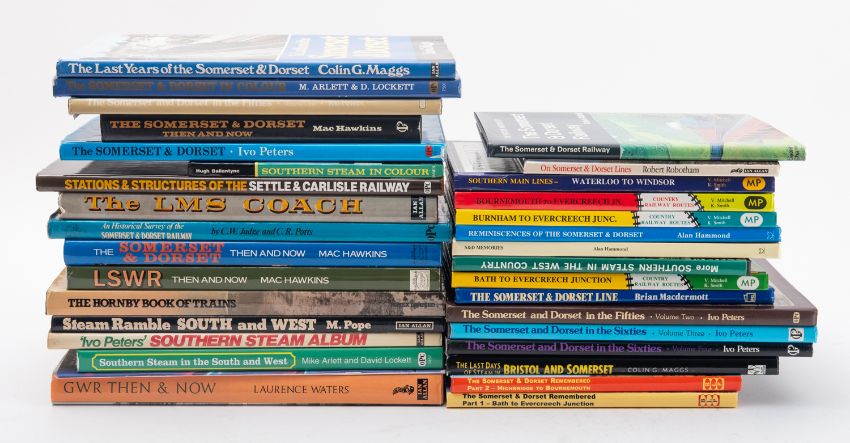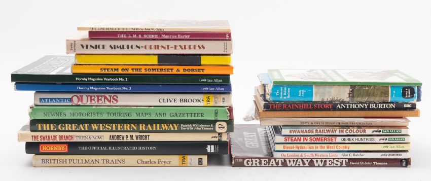 Fryer, C, 'British Pullman Trains' Peterborough 1992. Together with a large collection of railway and Hornby related books in two boxes.