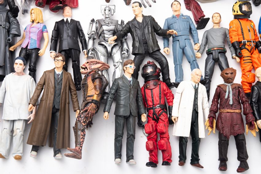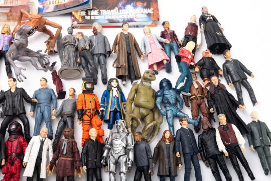A collection of Dr. Who action figures, including The Dr, Sycorax Leader, a Weaping Angel and others etc, mostly unboxed.