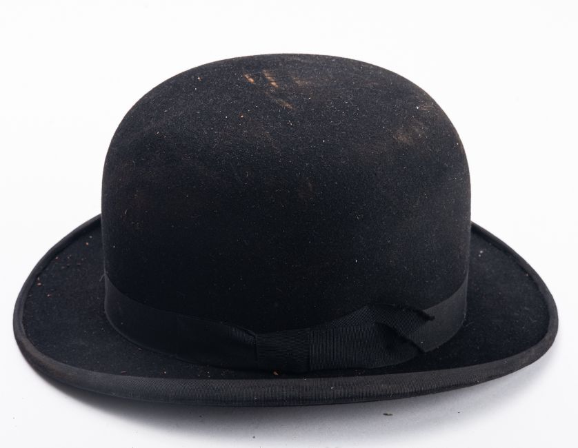 Two 20th Century black Bowler Hats. One Henry Heath size 6,7/8, one Gieves size 7, together with a Gieves 'Empire' hat size 7,1/8, a Gieves black top hat size 7 and a Christy's black velvet riding hat with metal horse bit in three hat boxes. (5)