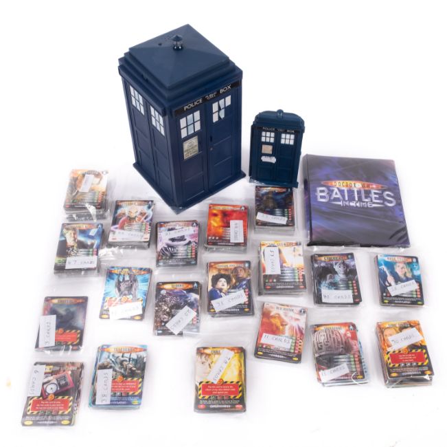 A collection of Dr Who Battles in Time collectors cards. Approximately 650 cards together with a booklet and two Tardis cases.