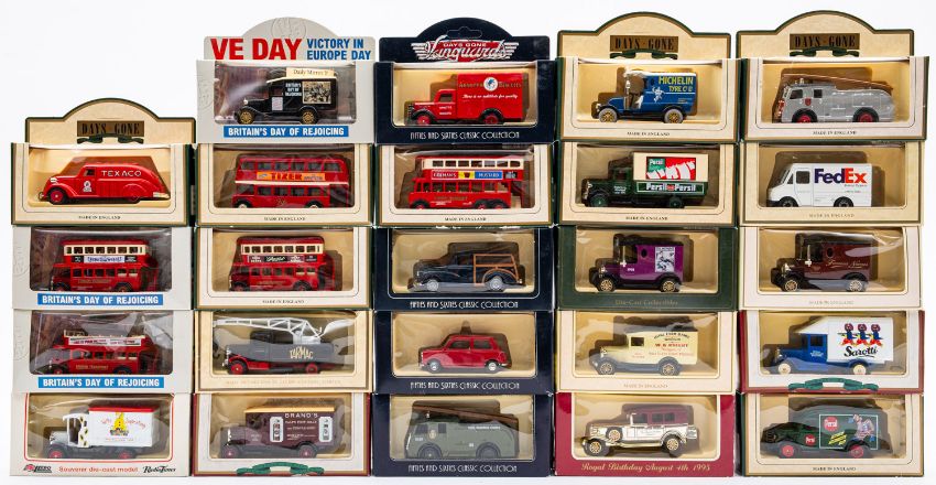 A collection of Lledo Days Gone and Vanguard diecast vehicles. Including trucks, vans and buses etc, all boxed.