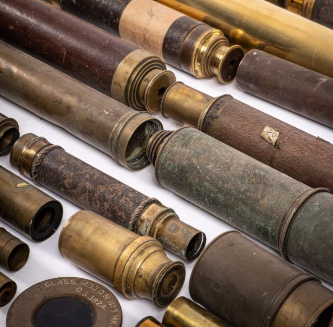 A collection of 19th Century and later brass telescopes. Various sizes with wooden and leather bound examples etc.