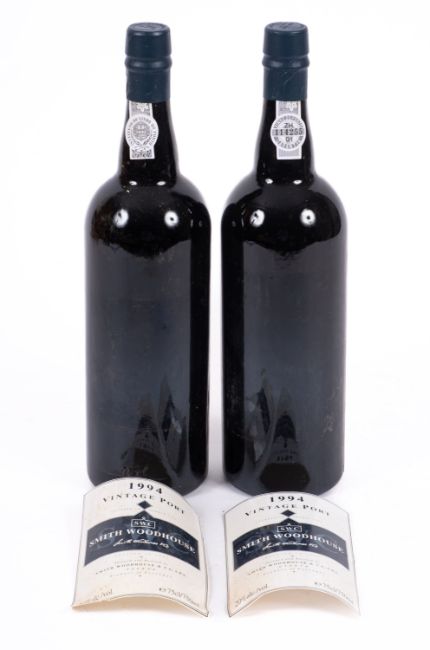 Two bottles of Smith Woodhouse 1994 vintage port. Both labels loose but present, 75cl, 20% vol, in associated Smith Woodhouse box.