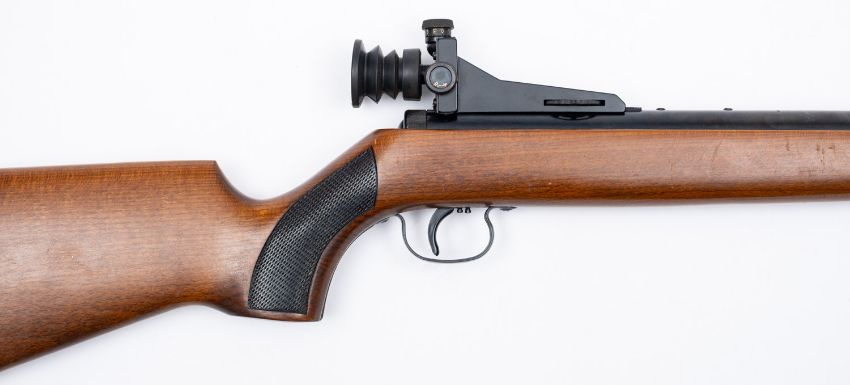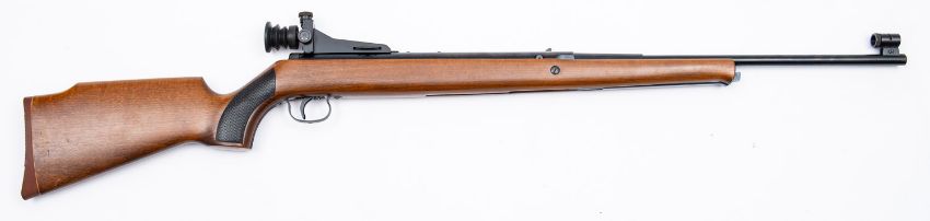 An Original MOD50 underlever air rifle. Serial number 72340371, .22 calibre, having a 17' two stage barrel on a wooden stock with rubber butt plate and 14' length of pull, fitted with Aperature Target Sights.