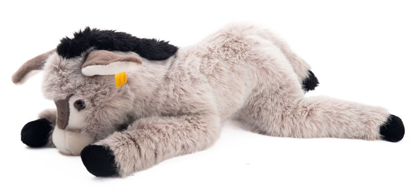 A late 20th Century Steiff donkey. In grey with black mane, having celluloid eyes and felt pads, 60cm long.