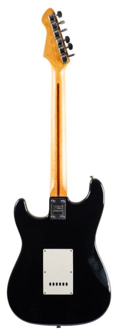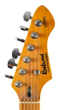 Rockwood by Hohner - An 'LX90L' stratocaster style electric guitar, with maple neck, black body and white scratchplate.