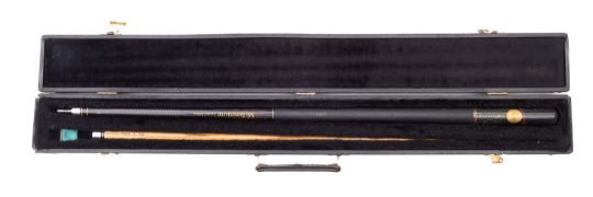 A BCE Custom Cues limited edition Ronnie O'Sullivan snooker cue. The two piece cue with grade A ash fore-end and composition grip, in original lined case.